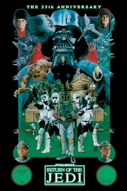 Matt Busch, Lucasfilm, The 501st Great Lakes Garrison, and Paul Michael Kane have teamed up to produce this beautiful poster commemorating all of the villains from RETURN OF THE JEDI! The best part is, all of the proceeds will go to the National Lymphoma Society.