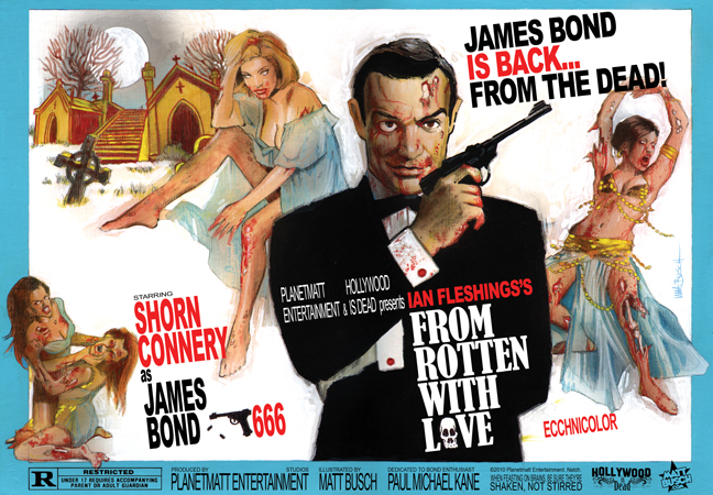 Starring Shorn Connery as James Bond 666, zombified espionage is at its best in Ian Fleshing’s FROM ROTTEN WITH LOVE.