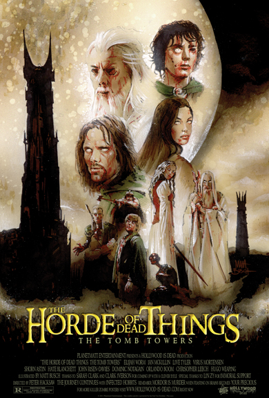The epidemic continues to spread through Middle Earth. When Hobbits crave flesh they become Bored of the Rings. Remember kids, Mordor is Murder.